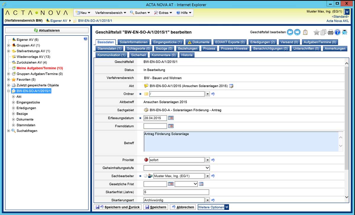 L'introduction progressive d'Acta Nova en tant qu'outil central pour le traitement des affaires avec gestion des flux de travail et des documents a déjà commencé dans la ville d'Innsbruck en 2008. Dans la phase finale, plus de 400 utilisateurs travailleront avec Acta Nova. Peu à peu, le système a été élargi pour inclure l'accès à des systèmes spécialisés tels que la gestion des subventions, et le contenu a été enrichi par un grand nombre de migrations de données provenant de plusieurs systèmes existants. Grâce à l'intégration des formulaires en ligne, les données entrantes peuvent être transférées très efficacement et traitées dans l'application sans entrées redondantes.